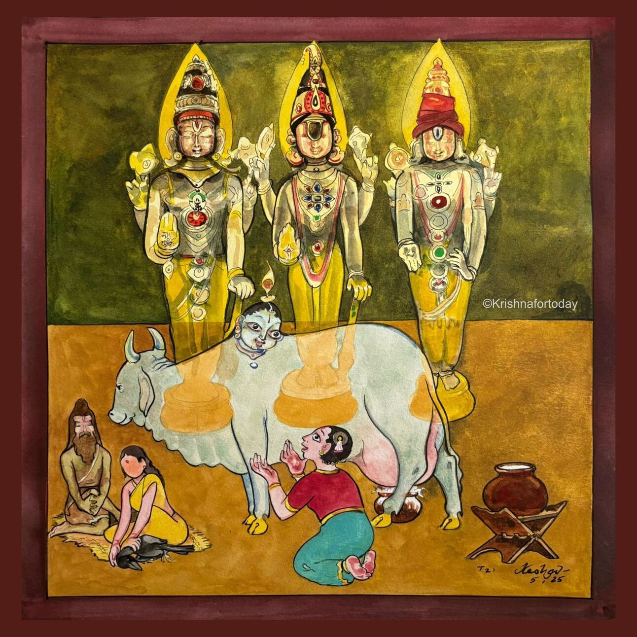 Andal adds that such a Supreme is standing amidst us in different forms (param, Vyuham, Vibhavam, archavatar and antaryami).