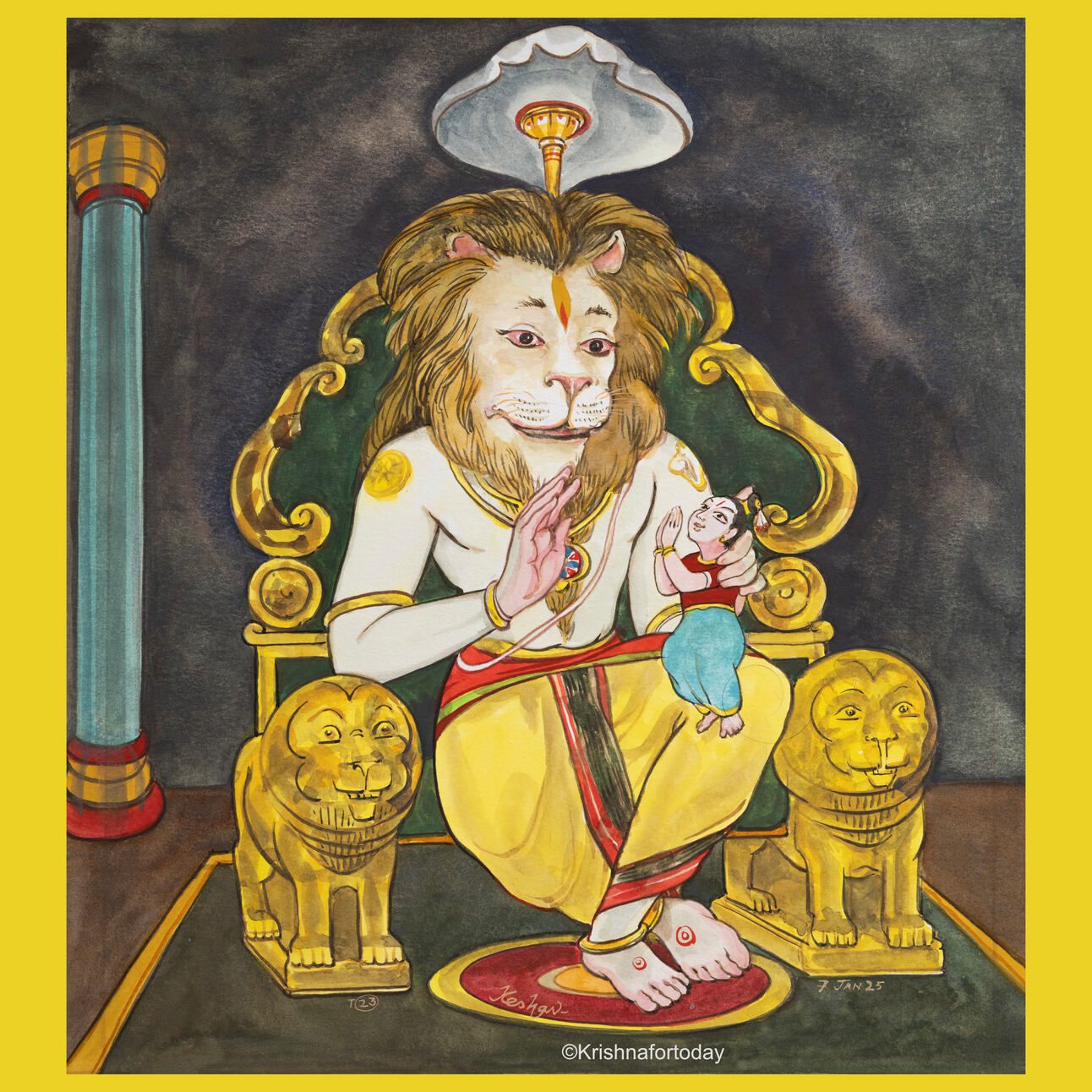 “O Krishna!! Walk towards the throne with the gait of a majestic lion, like it stretches itself after a long slumber, shakes its flowing mane, holds its head high, and with glowing eyes, surveys everything from the hilltop!"