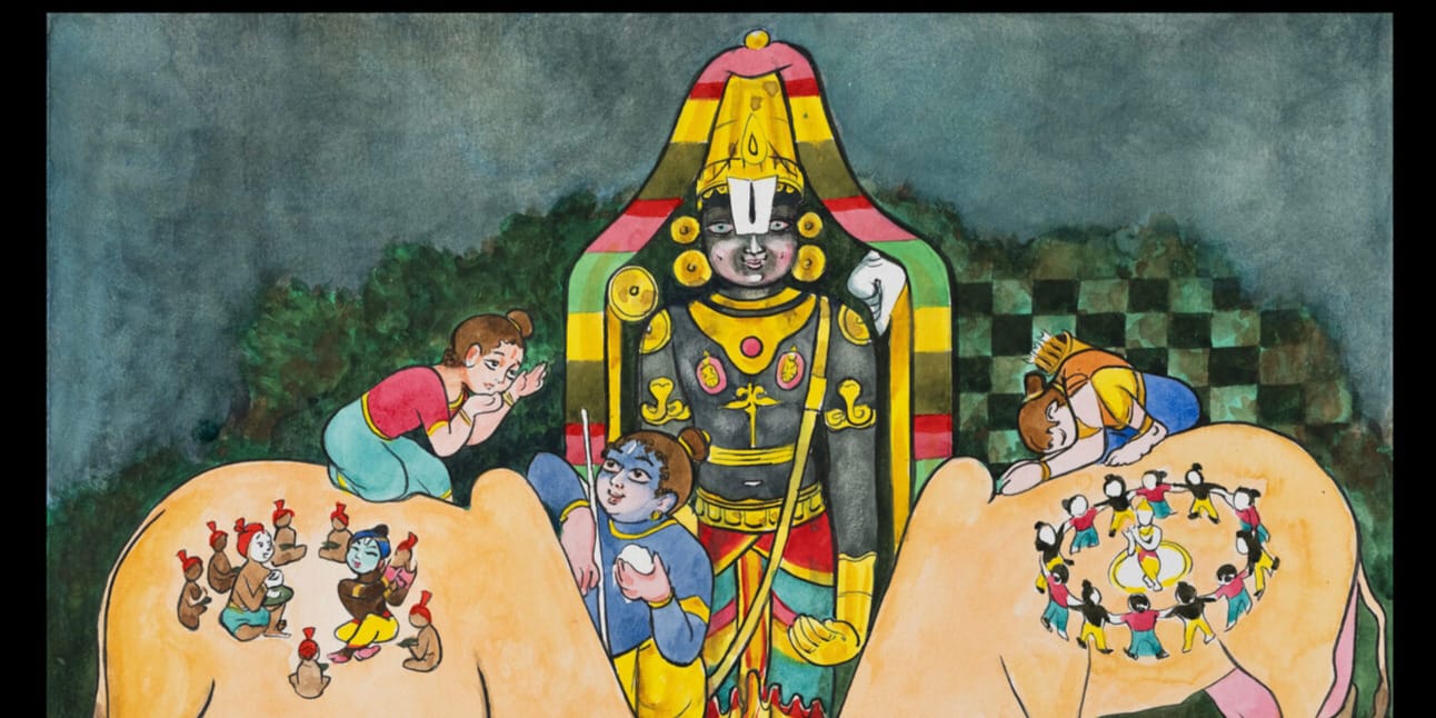 “Govinda!! What a blessing that we’ve been born along with you!! You are Vamana, you are Rama, you’re Goverdhandhari, you are Damodara, you are Gitacharya — yet you descended amongst us as a simple cowherd.”