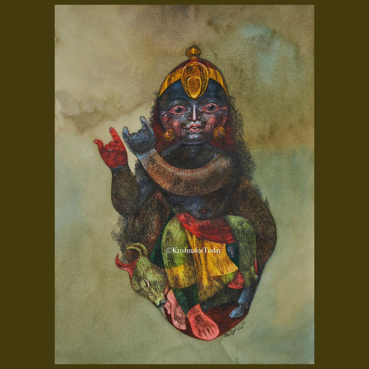 Krishna is New Forever - this is the central theme of Keshav's New Forever series of paintings. Through his art, Keshav attempts to showcase how Krishna's teachings and stories are relevant even in today's times. The deep-rooted spiritual messages of Krishna's life are still significant, and they will continue to be relevant as they transcend time and age.