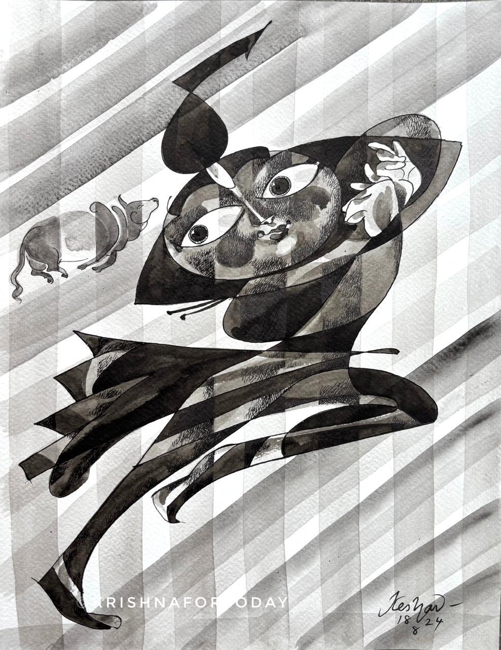 He is not bound by rules or limitations in His interactions. Just as he roamed freely in Vrindavan, he is ever-present in the hearts of those who love him. It represents a state of natural bliss and divine love found in simplicity.